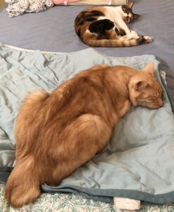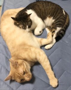 あとは玉ちゃんが寝ていると縞くんがいそいそとくっつきに行ってます。仲良しさん。